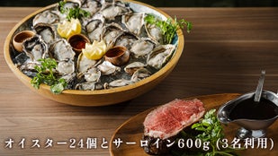 オイスター24個と炭焼きサーロインステーキ600g(3名まで)+会員特典