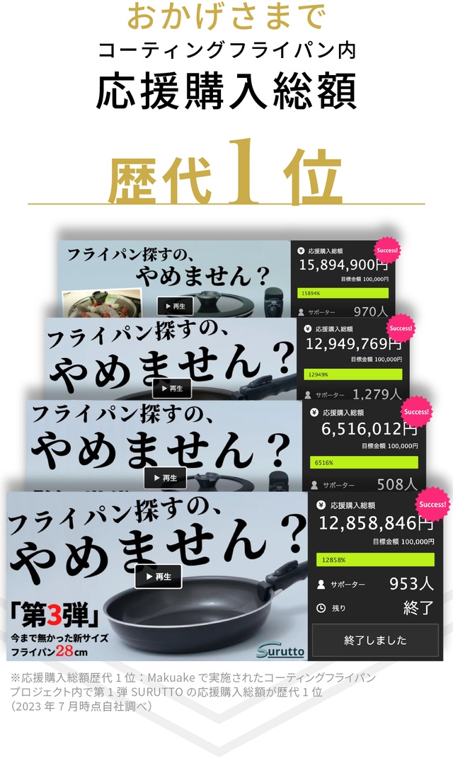 - Makuakeコーティングフライパン応援購入1位『SURUTTO』の限界突破モデル(卵焼き型)
