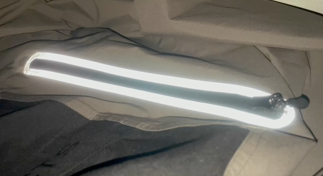 夜道の歩行・自転車走行を考慮し、ポケット部分・フード部分に再帰反射テープを使用。