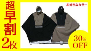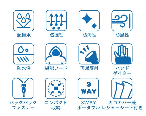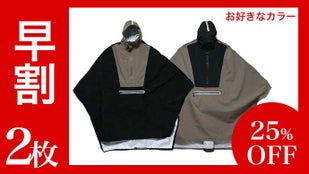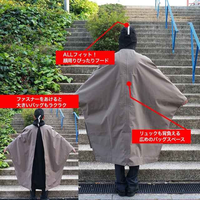 - 前回好評頂いた多機能レインポンチョが機能面、仕様面で更にバージョンアップ!