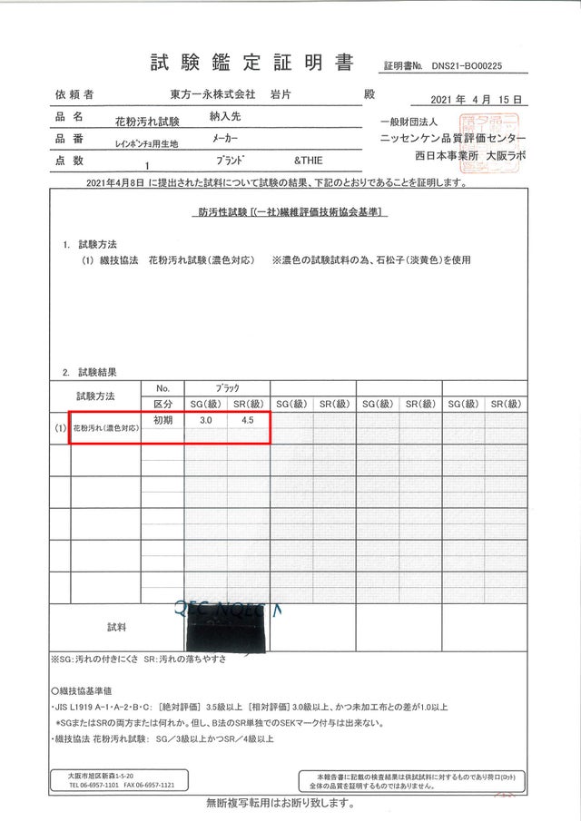 ★花粉汚れに関しての試験です。汚れが付きにくく落ちやすいことを表しています。