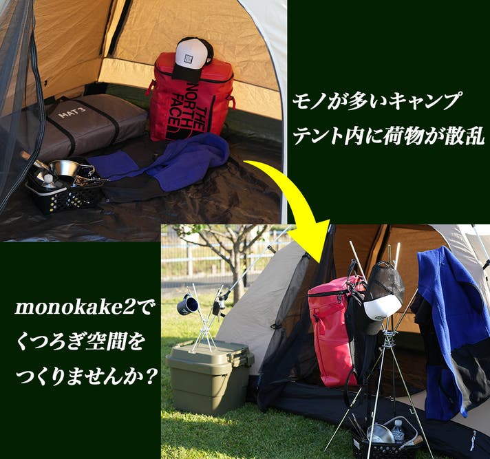 アウトドアシーンでモノの置き場に困ってテント内に置きっぱなしにしたことないですか??
