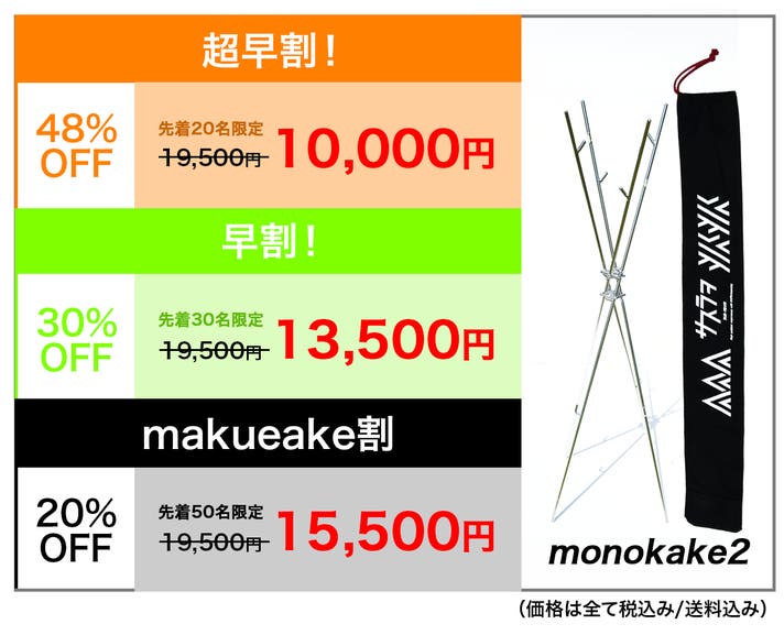 monokake2 1台 15500円 (一般予定販売価格19500円(税込・送料込)×20%OFF