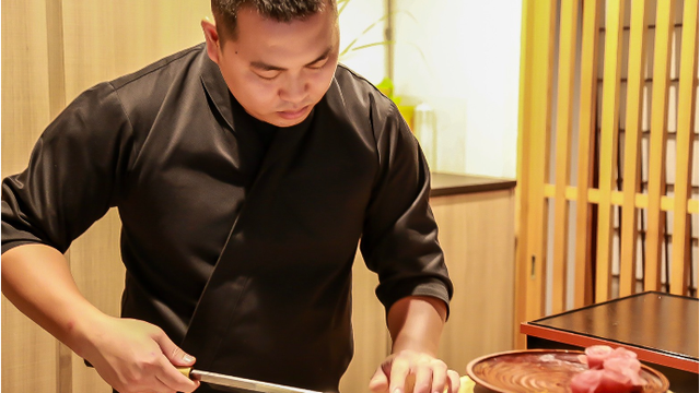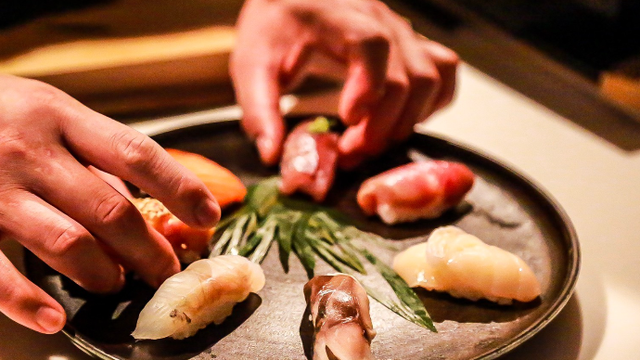 鮨早川では個室のカウンターの専属板前として著名人の方々への握りの提供を経験、隙間の時間には中華、イタリアン、和食等他ジャンルの料理長の元で違うアングルからの鮨へのアプローチを研究。