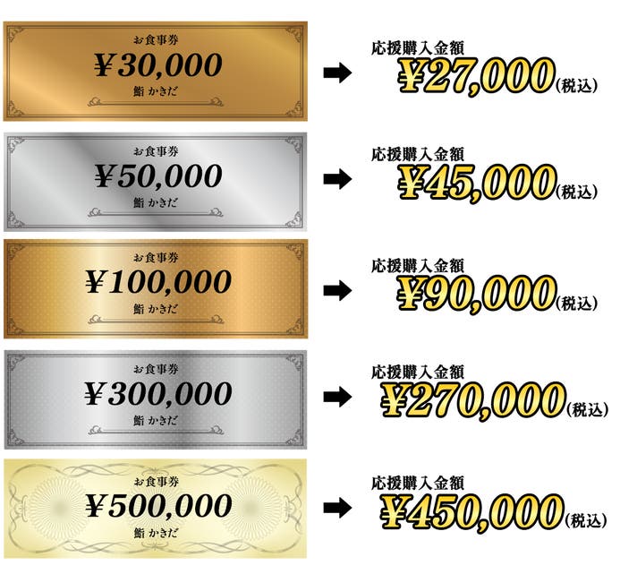 「かきだ」グループ全店でご利用可能なお食事券を少しお安くご提供します!