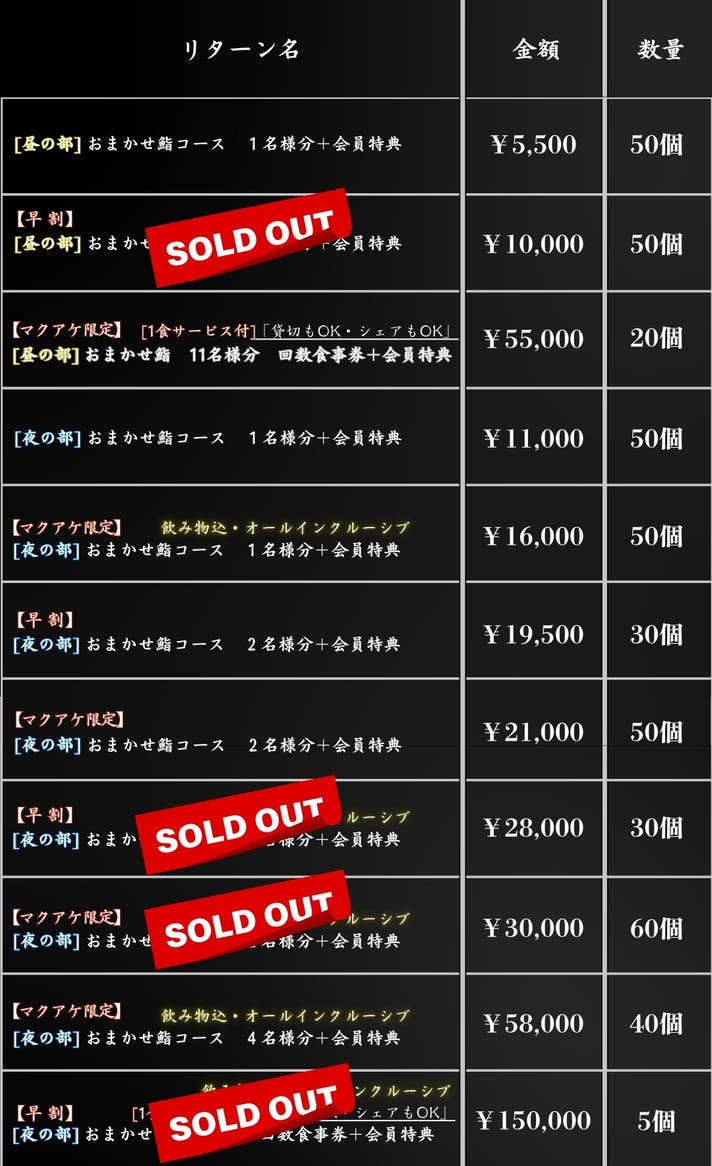 という不安をなくし、1周年祭のマクアケ限定として「おまかせ鮨」に“飲み物込み”を解禁“オールインクルーシブ体験”をご用意しました。