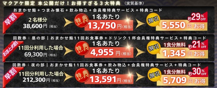 [昼の部の会員特典]