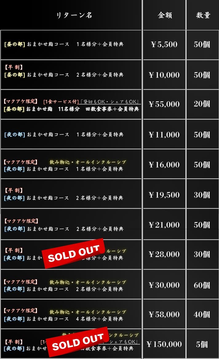 という不安をなくし、1周年祭のマクアケ限定として「おまかせ鮨」に“飲み物込み”を解禁“オールインクルーシブ体験”をご用意しました。