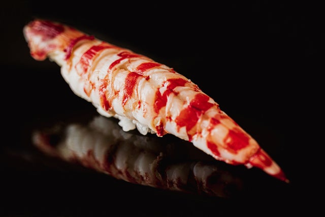 まずは、江戸前を代表する鮨種「コハダ」。佐賀産を中心に使用しています。程よい締め加減で、酢飯と一体になった繊細な味わいをお楽しみいただけます。包丁、締め、づけ、ねかせ、鮨屋の全ての技術がこの一貫に込められています。