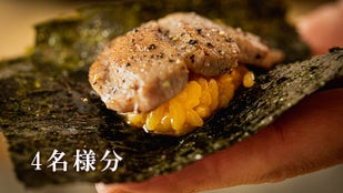 当店自慢の蝦夷バフンウニと自家製イクラ醤油漬けの小どんぶりや、今回のためだけに用意した、炙りトロとトリュフと卵かけご飯が融合した炙りトロTKGなど、「鮨かくの」を味わい尽くしていただける内容に仕上げました。