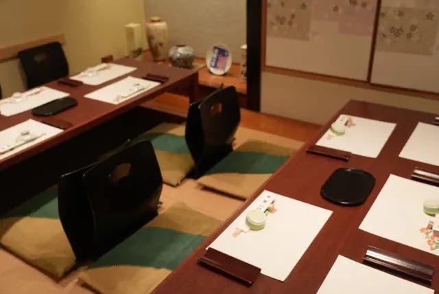 当店では、6名様用と8名様用のお座敷をご用意している。ご家族やご友人とのお食事、特別なご会食にも最適な空間で、ゆったりとお過ごしいただけるようになっている。
