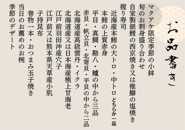 【カウンター貸切】寿司割烹植田Makuake限定コース6名様分
