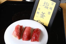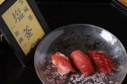 赤身は醤油、中トロ大トロは岩塩で召し上がって頂きます。鮪本来の味を堪能頂ける事間違い無し、本物の食材と本物の技術により今までの鮪の概念が変わる代物です
