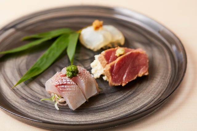 極上のマグロをコースのなかで2回に分けて計5貫、お召し上がりいただきます。
