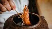 真っ赤に色づいたエビが茶釜から姿を現し、水が滴る瞬間をぜひ逃さずおさめてください。