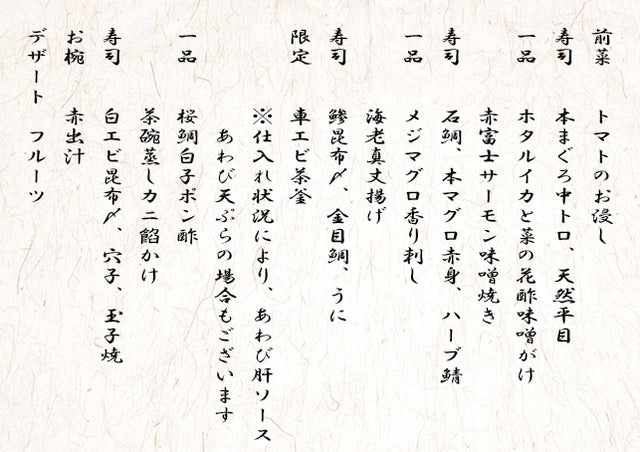 ※季節や仕入れ状況により、コースの内容が一部変更する可能性がございます。