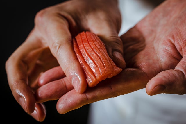 それから、「鮨 三歩」が大事にするのは、お客様にただ寿司を提供するのではなく、手で触り、握り、感じていただく「体験型」のパフォーマンス。