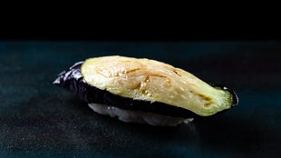 コースの始まりは茄子の揚げ浸し、「おいで“ナス”」。親方ゆずりの小粋なギャグでカウンターは和やかな雰囲気に包まれる。