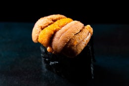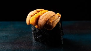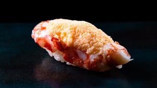 「登美粋」の西野伸行氏もその一人だ。「登美粋」の超高級海老を使用した握りは、味わい深い甘みが口いっぱいに広がる。