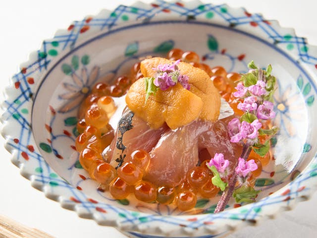 ・季節の魚の漬け-雲丹・イクラ乗せ-
