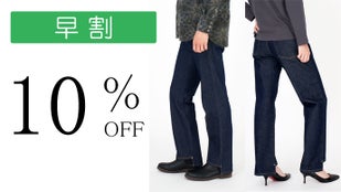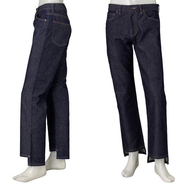 70-80年代風の懐かしい色合いのデニムを使い、裾の長さが前と後ろで違う、横から見ると段になっているユニークなデザインの「裾段カットデニム」