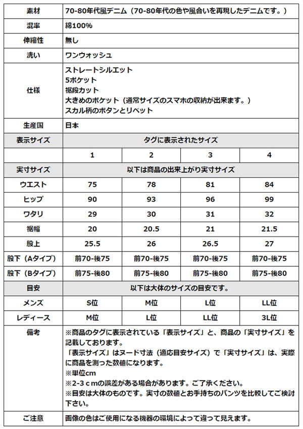 70-80年代風デニム(70-80年代の色や風合いを再現したデニムです。)