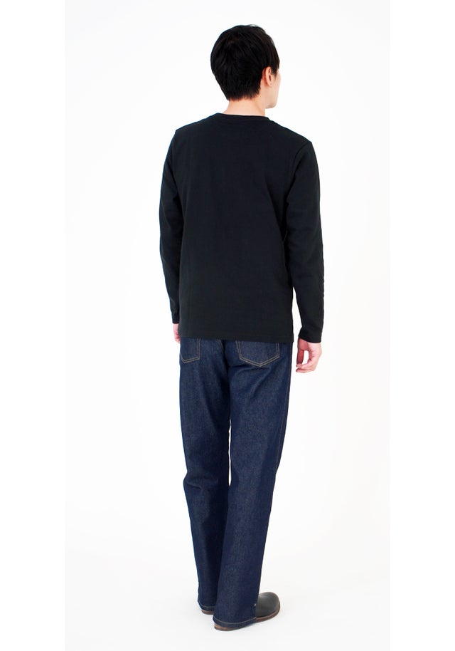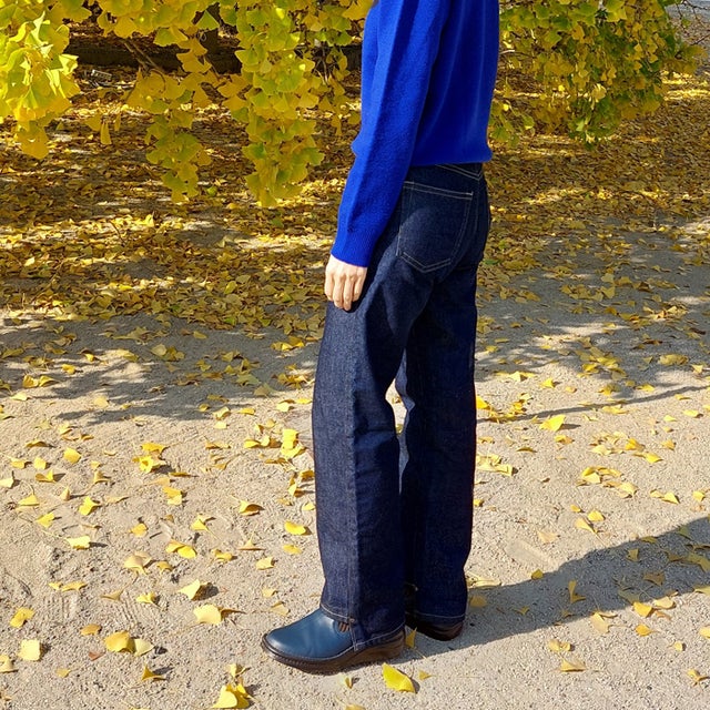 染色はピュアインディゴ10回染と若干浅めなので比較的早く、タテ落ちが無いキレイなブルーに色落ちすると思います。