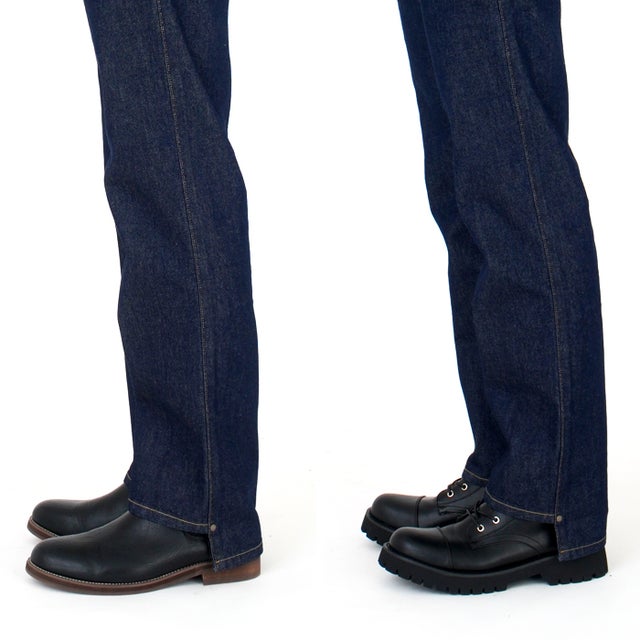 - 裾のカットが斬新!バイクシーンでも映える足元。ユニセックスでブーツや踵の高い靴におすすめ!