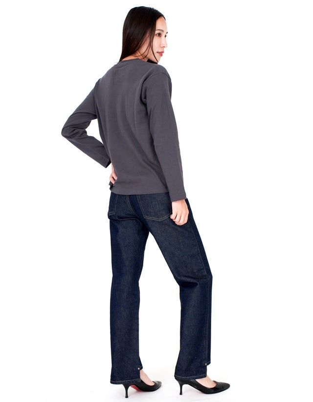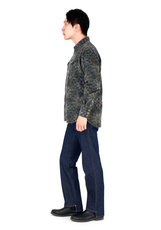 シルエットはベーシックなストレートで、コインポケットの付いた5ポケット仕様になります。