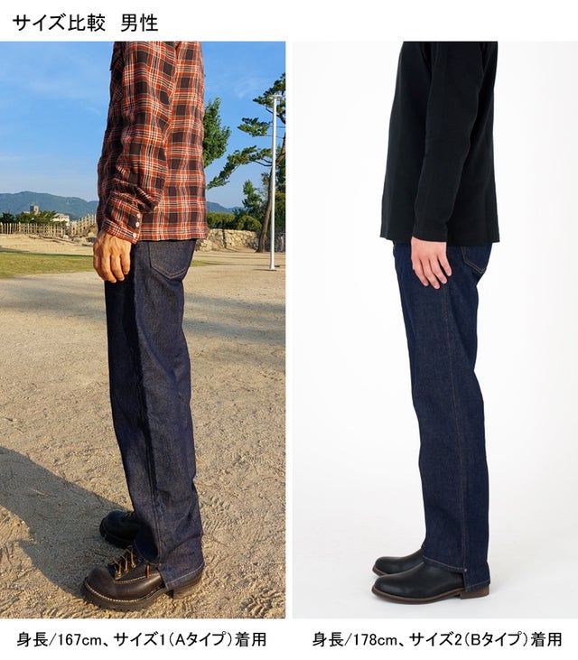 男性:身長167cm、サイズ2(Aタイプ)着用(サンプルは少し長めに出来上がっています。)