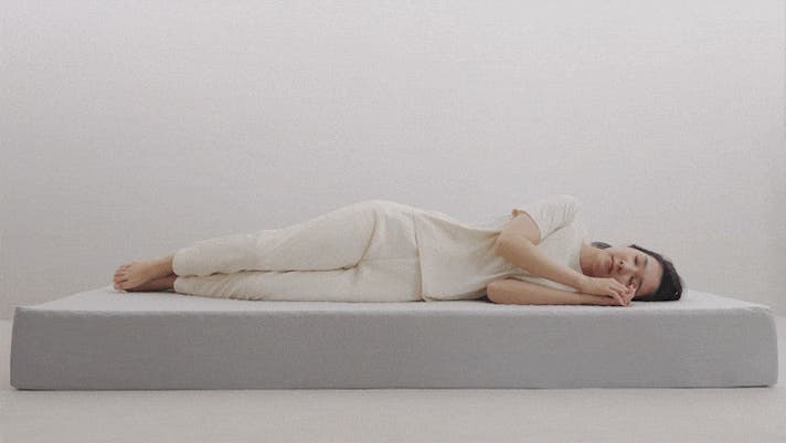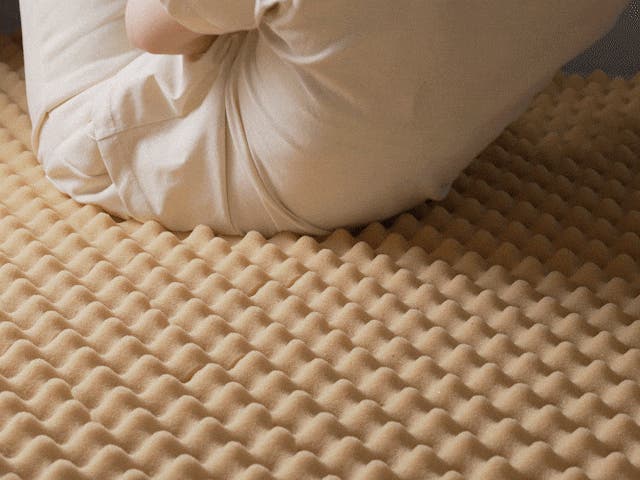 マットレスに寝そべると、体の凹凸や重さに合わせて点が形を変えながら沈み込み、フィットしながら優しく体を受け止めるため、包み込まれるような寝心地が生まれます。