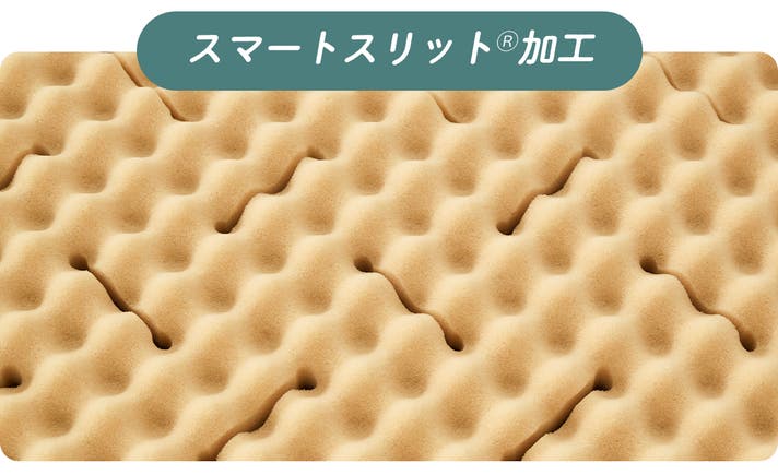 さらにスマートスリット®︎加工は、パーツごとの反発力と吸収力により、寝返りがしやすくなると共に、寝返りのたびに心地よく包み込まれる安心感を目指しました。