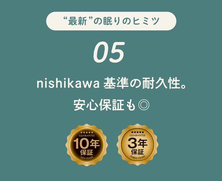 詳しい保証内容は下記サイトをご確認ください。https://www.nishikawa1566.com/contents/mattress/urethane-warranty/