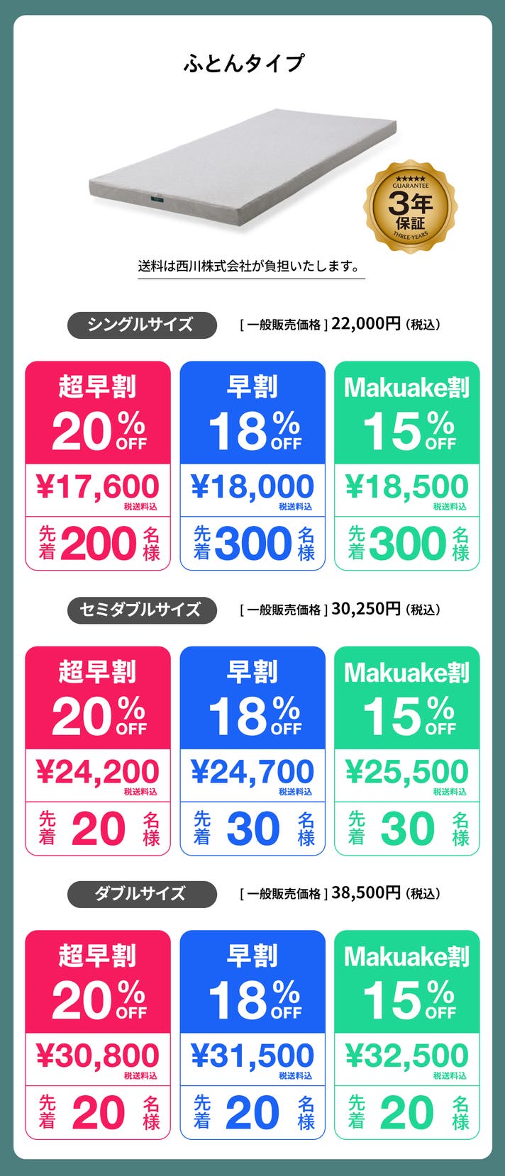 【3年保証】ふとんタイプ:シングルサイズ