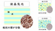この細胞間脂質の機能をヒントに研究し、角質層に似た液晶構造の乳化を発明しました。