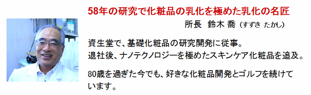 特に化粧品の基幹技術である「乳化」に命を懸けてきたと言っても良い「乳化の名匠」です。