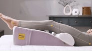 寝具メーカーのボノテック社は頭を持ち上げる枕でも個々のユーザーに好みがあり、最適な高さと形状がある。足枕だって同じで、個々に合わせることができるのが、最良の足枕である。