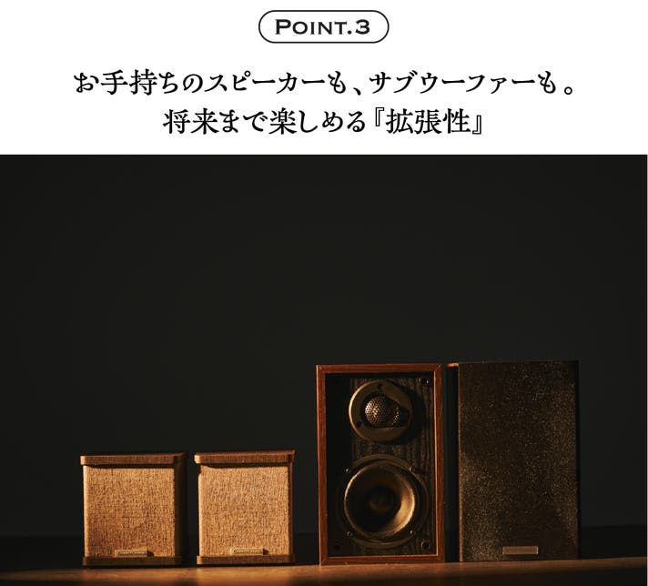 そんな思いをこめて、長年音響機器の開発をしてきたわたしたちなりに、誰もが手軽に良い音をご自宅で体験できる製品をつくりあげました。