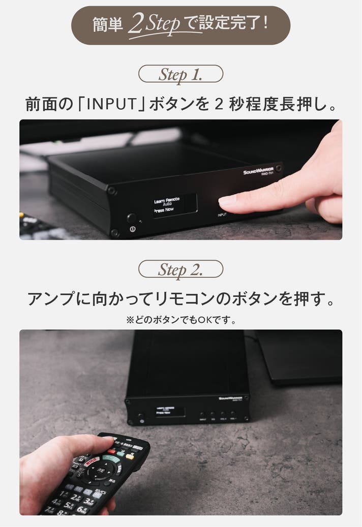 わたしたち音響メーカーにとっては自虐的にすら思えるこの発想の転換をヒントに、テレビ音声をお好みの音響用スピーカーでお楽しみいただくためのテレビ専用アンプを開発しました。