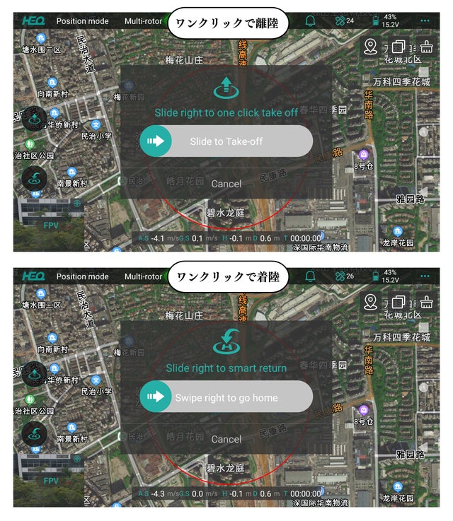 ワンクリックで離陸、着陸、初心者でも簡単に操作できます。
