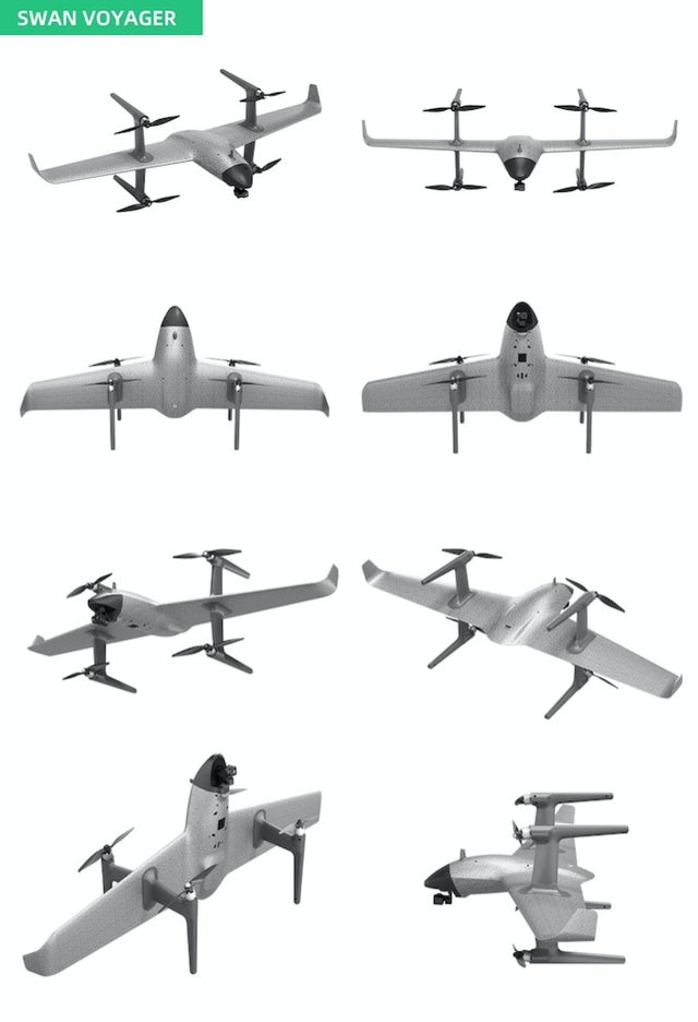Swan voyager には 2 つのフライトモードがあります。 機体がマルチローター モードの場合、マルチコプターのように飛行できます。 固定翼モードに切り替えると、機体は固定翼のようにフライトできます。 そのため、1 台のドローンで 2 つの異なる飛行体験を得ることができます。