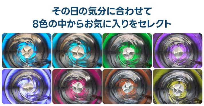 ブルー、アクアブルー、グリーン、パープル、ディープパープル、ピンク、オレンジ、イエローの全8色から、お好みのカラーをお選びください。