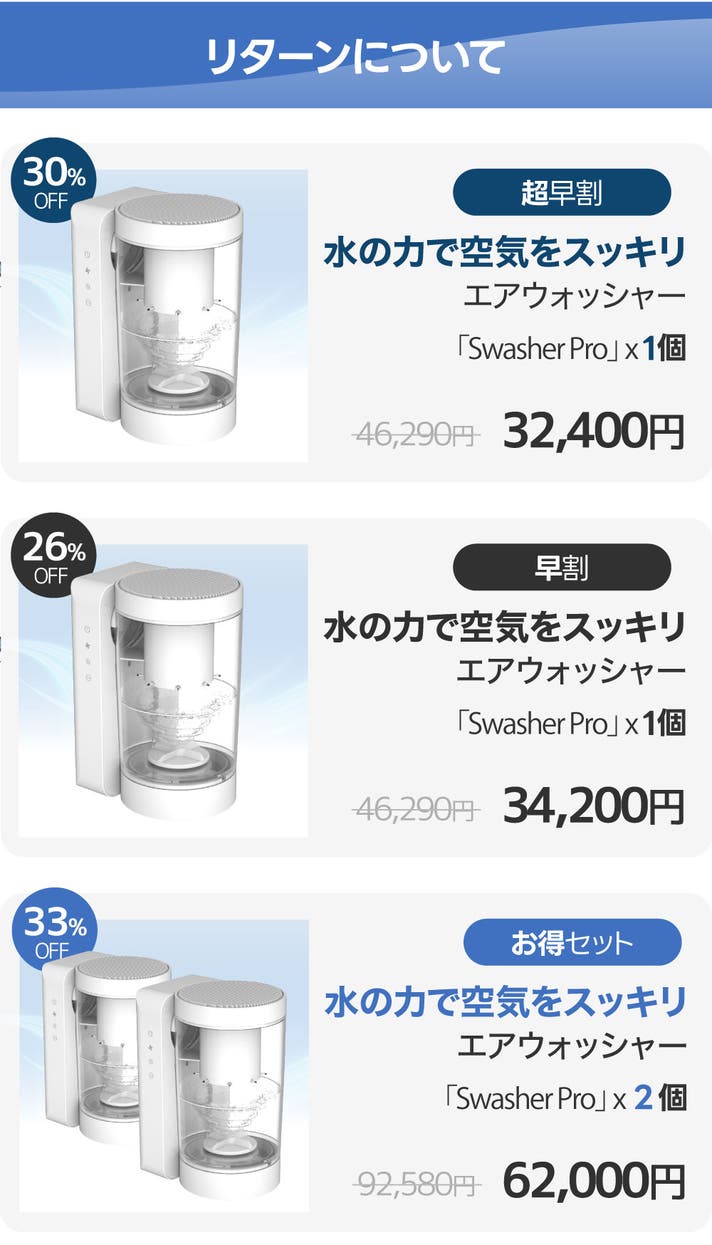 【早割】水の力で空気をスッキリ!エアウォッシャーSwasher pro x 1個