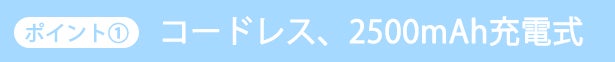 - 2500mAh大容量バッテリーを内蔵、連続作動時間は約60分間!
