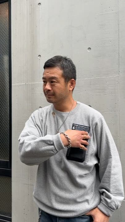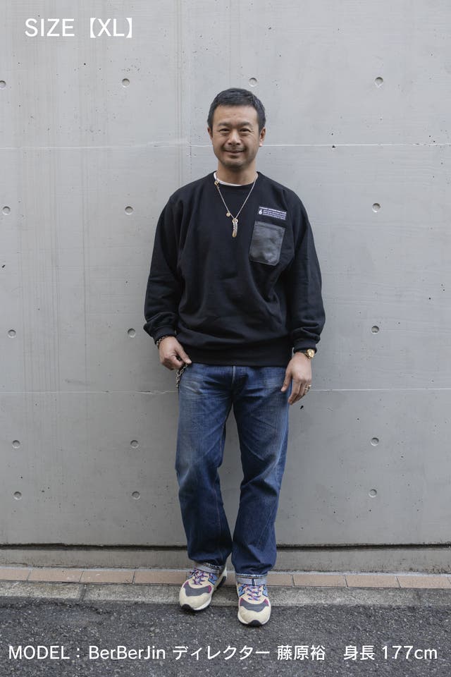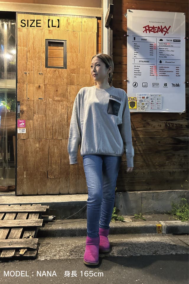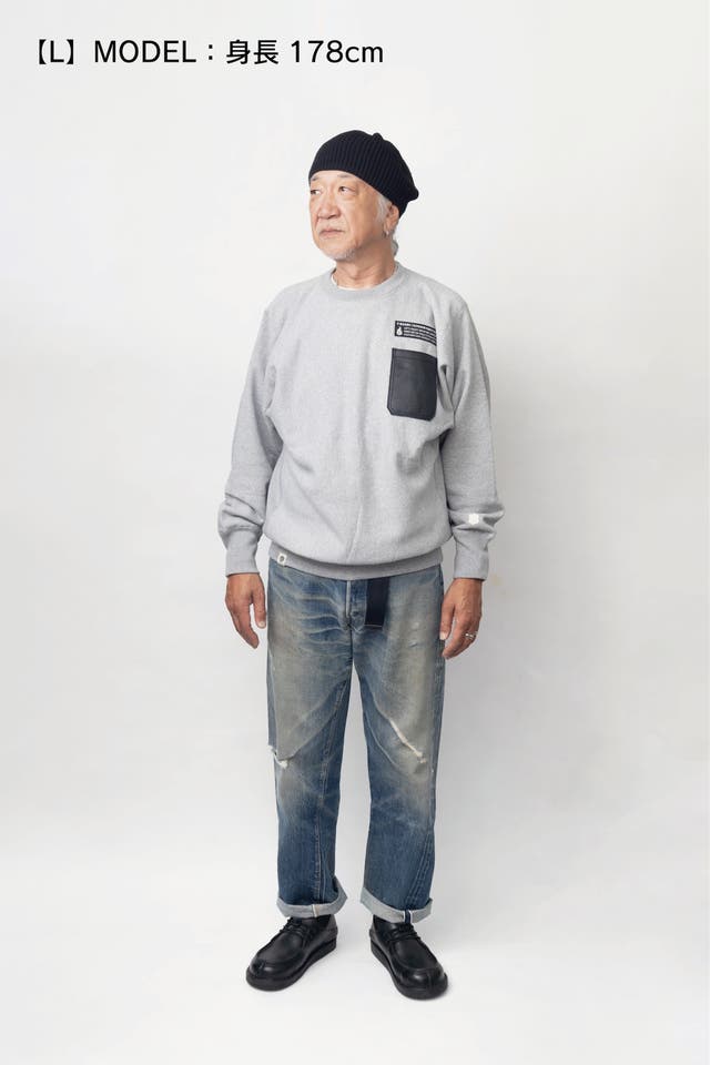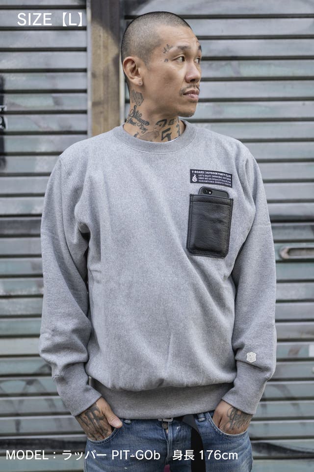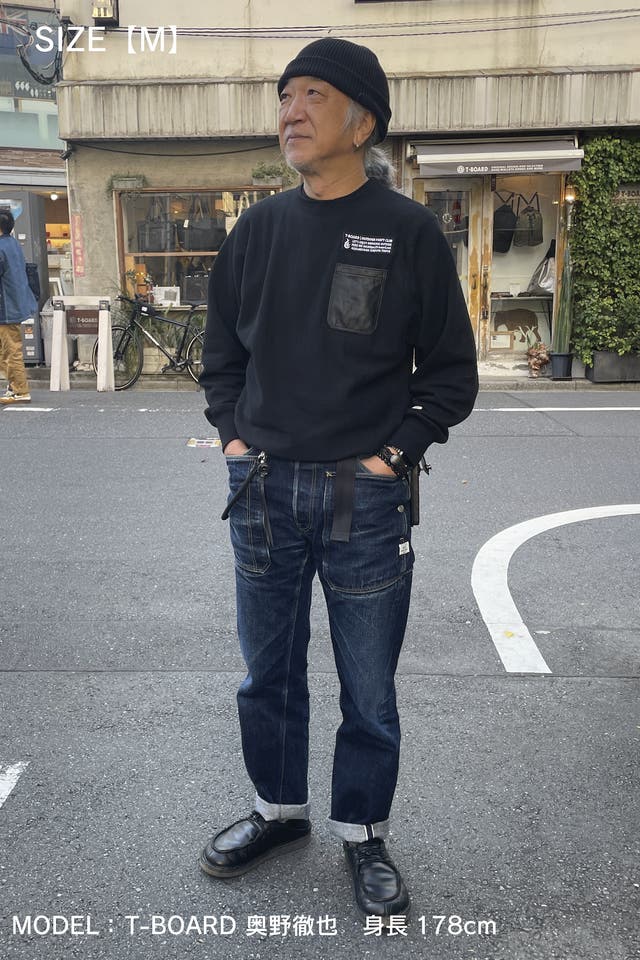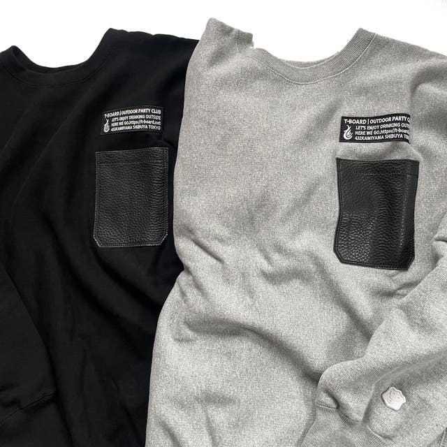 そのスウェットシャツの愛用者であるバッグデザイナー T-BOARD 奥野が自分欲しさに革のスマホポケットを縫い付けてカスタマイズした事から始まりました!