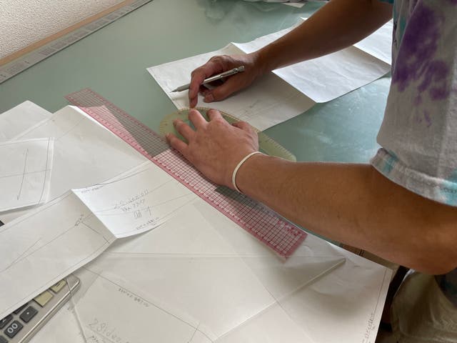 2人の手引きのパタンナー、OEM・ODM生産者としての長年の経験を活かし、納得行くまでパターンを引き直し、数多くのパーツ、サンプルを製作し、やっと納得できる製品を完成させる事ができました。