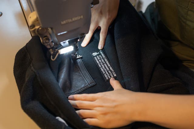 製品を洗ってから、革ポケット・ワッペン等の縫製するので手間がかかりますが、女性ならではの気遣いで細かいパーツをていねいに縫っていきます。