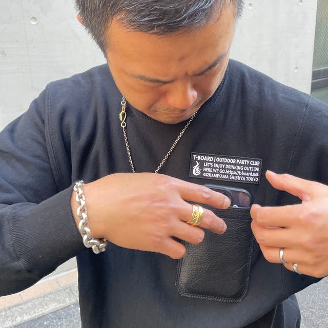 友人でもある2人が作るこのスウェットシャツを愛用しているバッグデザイナーT-BOARD奥野が、キャンプで便利なスマホ用 革ポケットを職人に縫い付けてもらった事から新しい展開が始まりました!