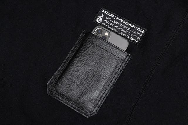 ●革のスマホ用ポケットとT-BOARDワッペン