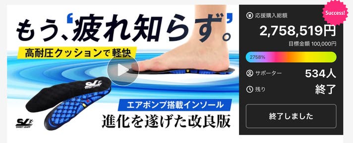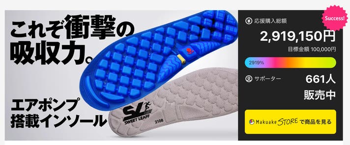 これまでMakuakeで2度にわたり、エアポンプ搭載インソールのプロジェクトを実施。 合計で延べ1190名以上ものサポーターの皆様から、熱い応援購入をいただきました。 この場を借りて、改めて心より御礼申し上げます。